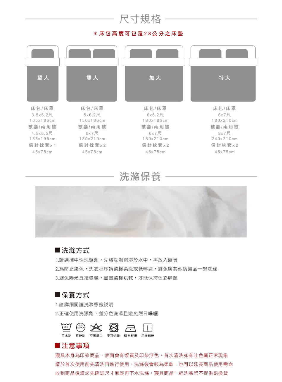 ◎建議清洗時,先將洗劑溶解於水中,再將床寢放入大型洗衣袋後再清洗